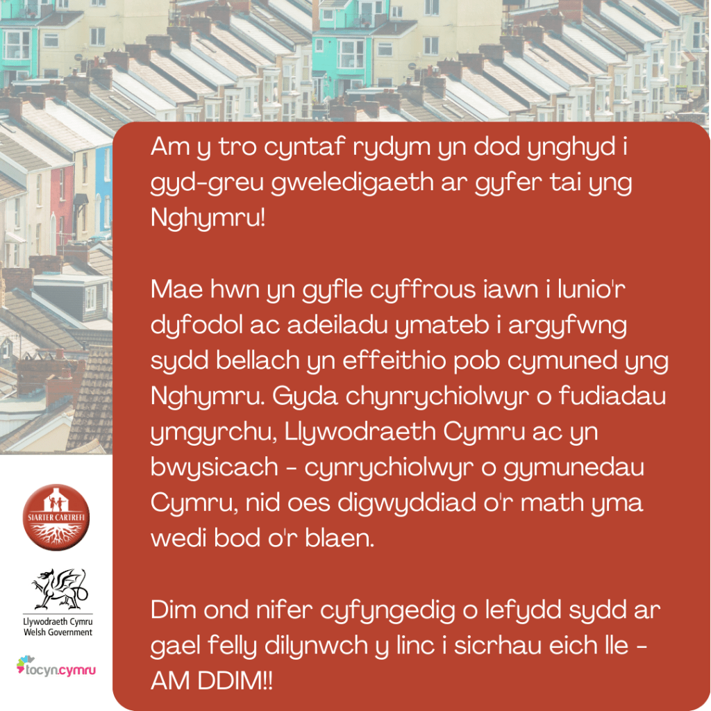 In a community consultation and Emergency housing Conference in Machynlleth, organised by the grassroots organisation Siarter Cartrefi and supported by the Welsh Government,February 2023, devolving the Crown Estate was consistently raised as an important issue, and was one of ten recommendations forwarded to Welsh Government. It was also one of the recommendations in the National Infrastructure Commission for Wales report recently published.